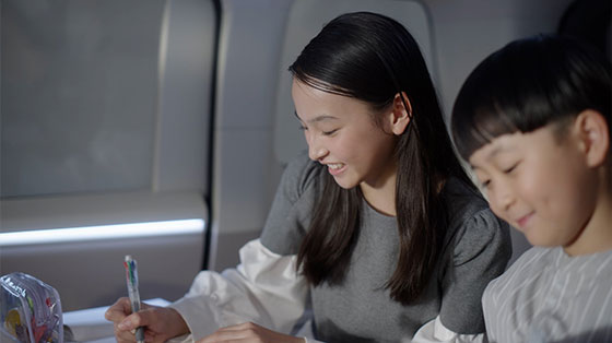 - The driver’s seat swivels to create a face-to-face space. With a fold-away table and screen, it can be used as a mobile workspace.