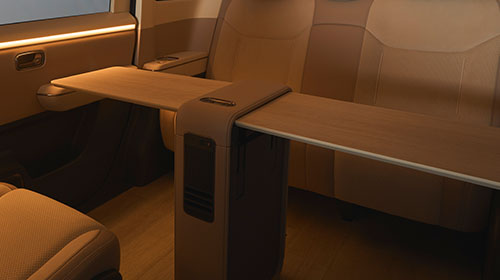 - The console box next to the driver’s seat unfolds into a table that opens up the central space, turning it into a comfortable area for work, study, or hobbies.