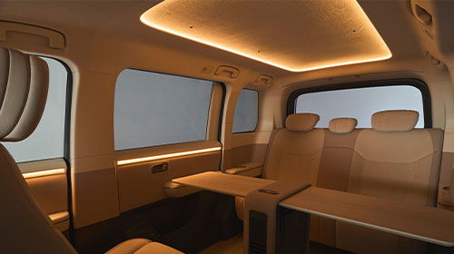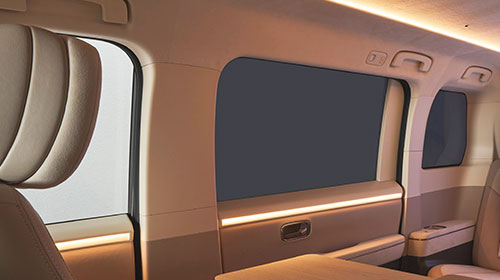 - The rear-seat windows feature LCD shades, allowing you to instantly block the outside view and enjoy a private space at the touch of a button.