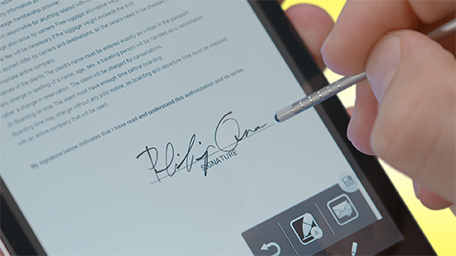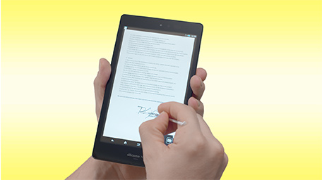 "IGZO" is an intermittently operational type of semiconductor, meaning that any noise generation affecting the touch panel detector circuits is very brief, allowing for highly accurate detection of even the faintest signals. This makes possible the kind of ultra-sensitivity that can pick up even on lines as thin as the tip of a pen. Writing on an "IGZO" powered screen has the same feel as on paper, enabling very natural handwriting input.