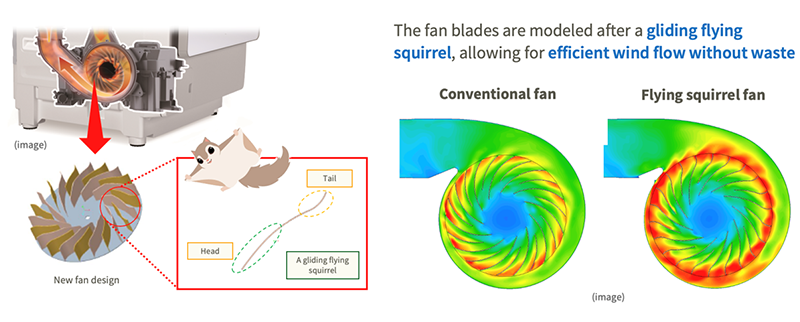 In addition to a hybrid drying technology that combines a heat pump and support heater, this product is also equipped with a new type of drying fan that uses Sharp’s unique biomimetics. By increasing the amount of air sent into the tub and improving drying efficiency, Sharp has reduced the amount of power consumed for each wash and dry cycle, achieving the industry’s highest level of energy efficiency.
