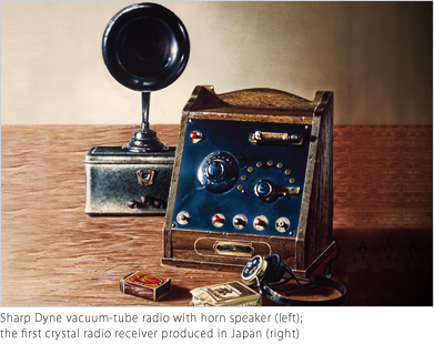 Based on the idea that “one of the secrets to business success is to get an early jump” and “in boom times, get ready for the wave of slow sales that will surely follow,” and buoyed by the success of his crystal radios, Tokuji lost no time in starting to prepare for his next business venture. It was the development of a vacuum-tube radio. At the time, crystal radios, with their clear sound and inexpensive price, were the mainstream. Vacuum-tube radios were an imported item, and expensive. In addition, at the time, they were battery-powered and replacing the batteries was a time-consuming process. The batteries, too, were expensive, and such radios were far from being in widespread use. However, Tokuji focused on how vacuum-tube radios had a wide reception area and, best of all, made it possible for the whole family to listen to the sound from speakers without using headphones. He quickly noticed that this was the up and coming style of listening to the radio. The early models of the “Sharp Dyne” vacuum-tube radio were battery-powered, but in 1929, he developed and introduced a long-sought vacuum-tube radio that ran on AC current, in other words, taking power from household electrical wiring.